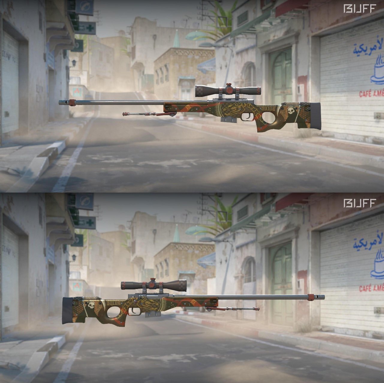 枪身上有一条盘旋着的蝰蛇(甚至在吐信子😋),非常亮眼的绿色,局内效果很不错,颜值很高,不怎么吃磨损,只有一些掉色,推荐略磨入手,暗金(98😱)