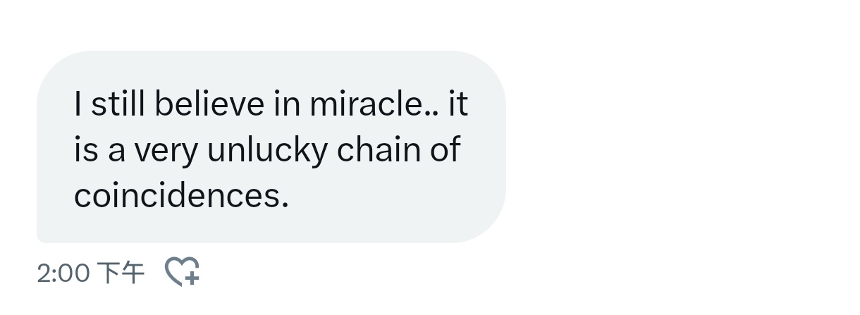 通过这些道歉,我明白了这一切都是一个巨大的巧合,我相信会有奇迹发生,他们会理解我的