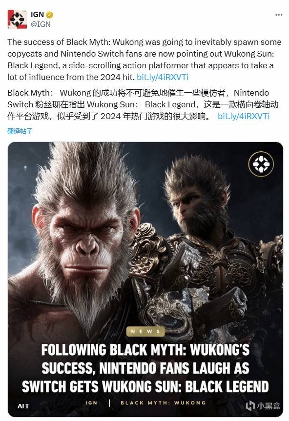 另外隨着《黑神話悟空》的大火,國內外各類遊戲也開啓了擦邊操作。據瞭解,Switch平臺出現了一款名爲“Wukong Sun: Black Legend(《悟空:黑傳說》)”的遊戲,售價爲7.99美元。IGN針對該遊戲進行了報道,同時給出了評價。這類題材相信會在未來幾年不斷髮酵,市面上或將出現各種有關於“孫悟空”爲主角的遊戲