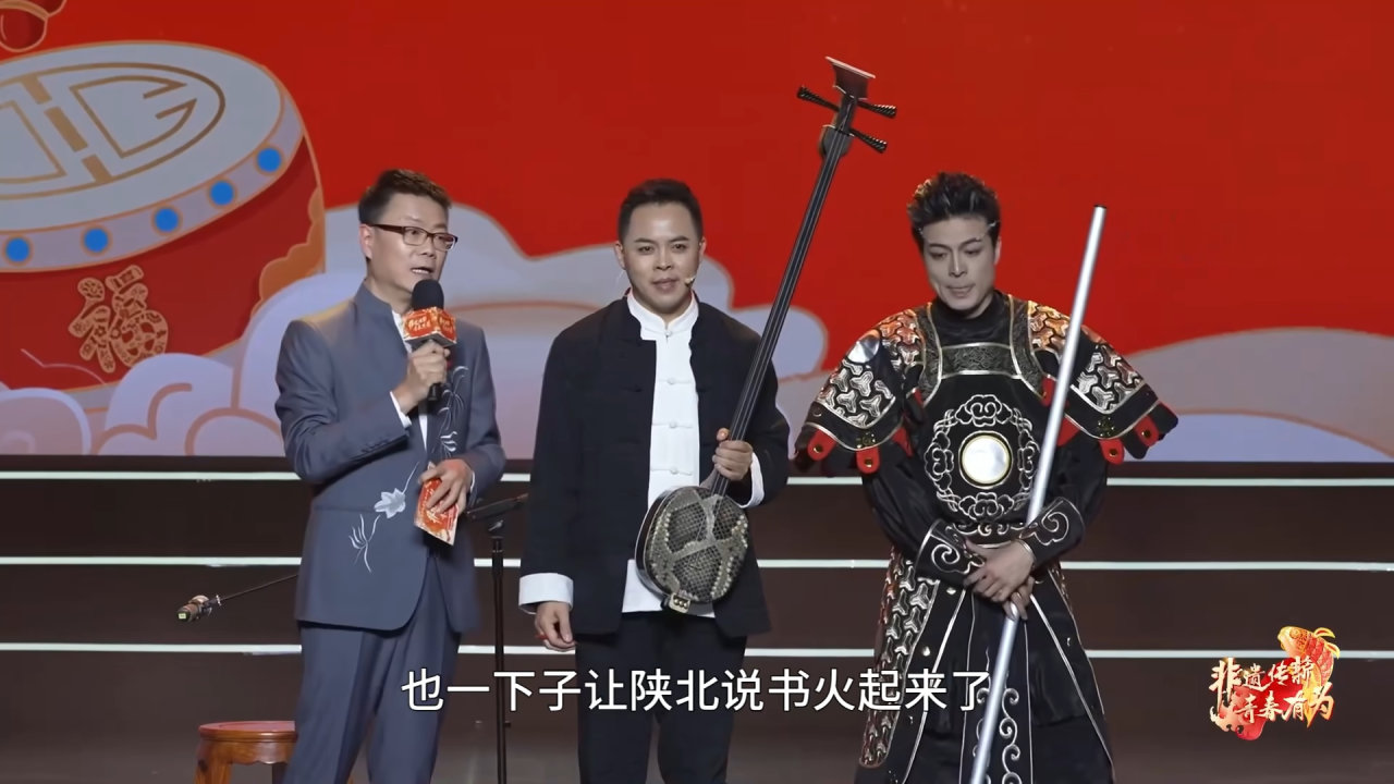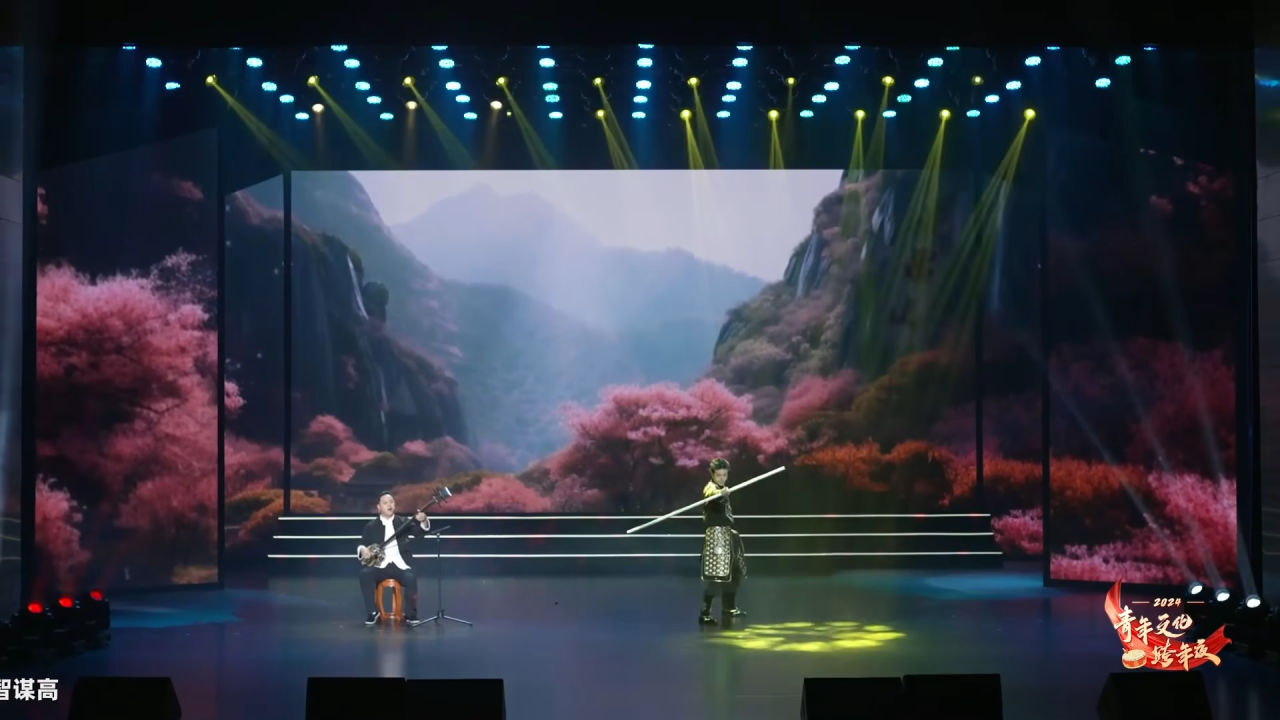 陝西省衡山說書非遺傳承人熊竹英與黑神話悟空動捕演員殷凱跨界融合表演。