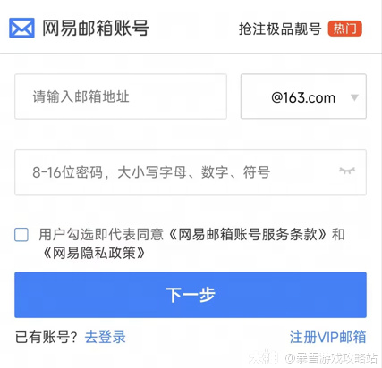 a、点击此处注册全新的网易邮箱账号,注册过长中需添加与待绑定战网通行证相同的手机号码,注册成功后暂不进行实名认证,可得到未实名的网易邮箱账号