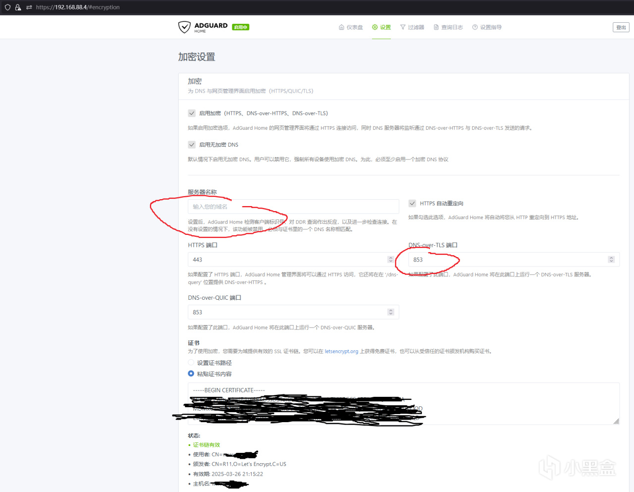 填入你的公網域名,並確保外網可正常與853端口通訊