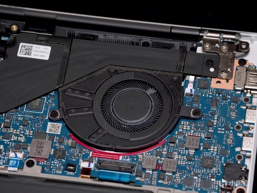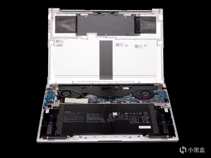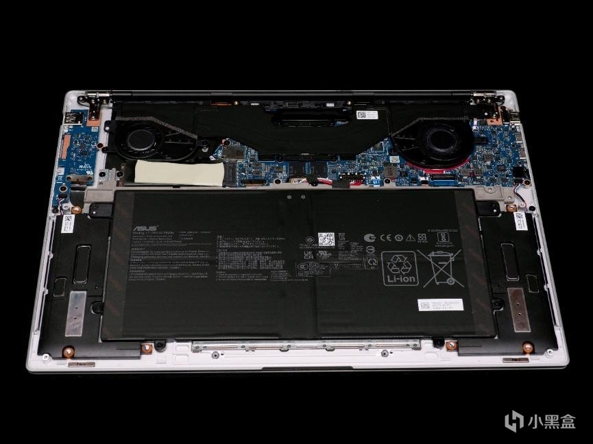 给锐龙 AI 9 HX 370安排的,是巨大的VC均热板叠加双层石墨片的设计,效果是立竿见影,而且通过合理材料的运用+上面提到的C面几何格栅散热的布局,热量不会影响键盘底部,使用体验大幅度提升!