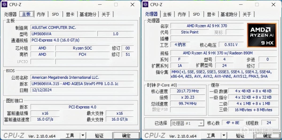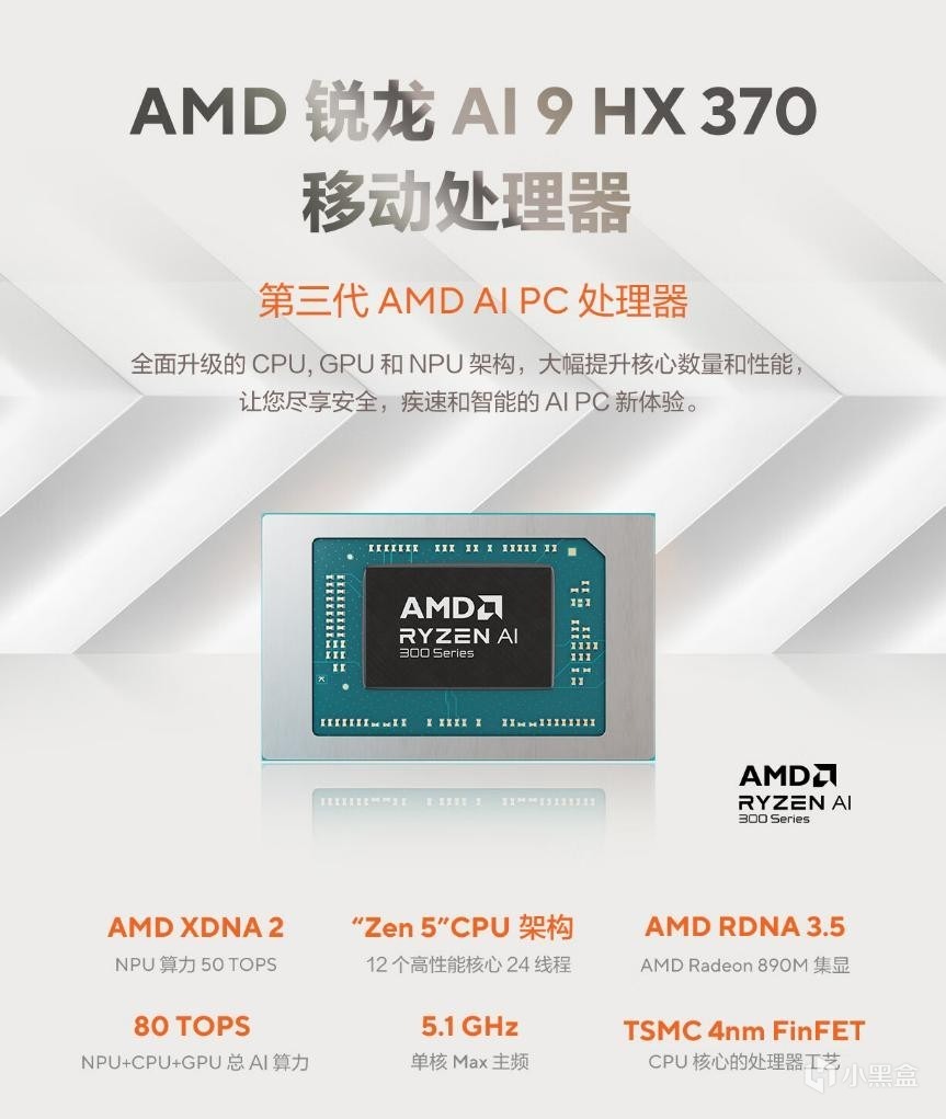 先来说说这颗锐龙AI 9 HX 370,作为定位旗舰的锐龙处理器,采用领先的4nm制程,不但有先进的Zen5 CPU架构,由支持超线程的4个ZEN5核心和8个ZEN5c核心,组成单核最大主频5.1GHz的12核心24线程结构,还带有规模比肩独显的Radeon 890M集显和算力达到50 TOPS的NPU,给轻薄本也带来了强劲的性能!