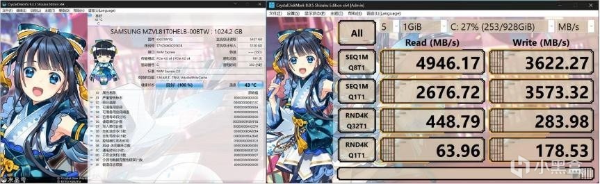 这台机器的硬盘是三星的MZVL81T0HELB,面向OEM的中端型号,读写速度表现中规中矩,大概还是为了续航和散热考虑吧。