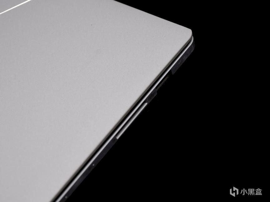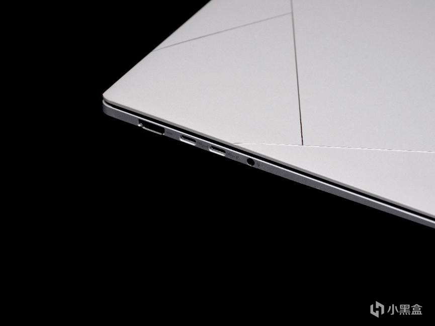 机身厚度大概只有1厘米多,图宣是说最薄处只有1.1厘米,工艺的追求上确实严格。就是这个机器名为“雪域白”感觉不太贴切,因为实际上的颜色看起来有些哑光白。接口依次是HDMI 2.1(TMDS)、两个USB 4 40G C口和一个3.5 融合音频口。几天的使用下来我发现,在盲插时、蚀刻再次能起到一个快速定位的作用……