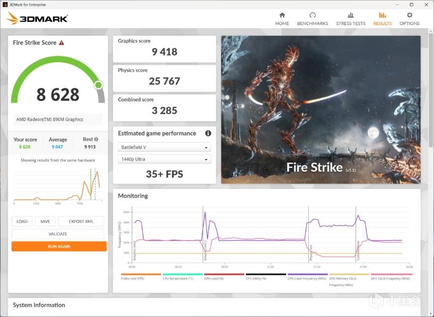 Fire Strike 8628,而锐龙AI 9 HX 370的主流得分大概是9000左右,这也和28-35W的保守功耗设计有关,ASUS,你还藏了多少!