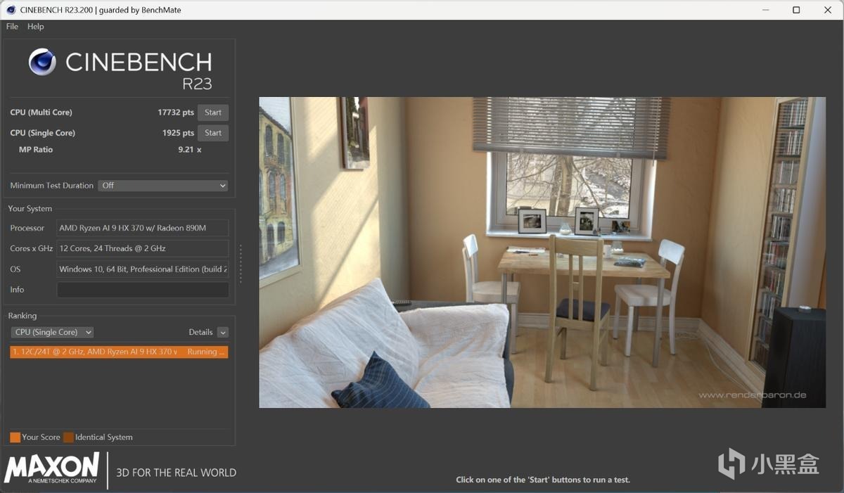 R23 17732;单核1925。HX370的潜力真的大的可怕。