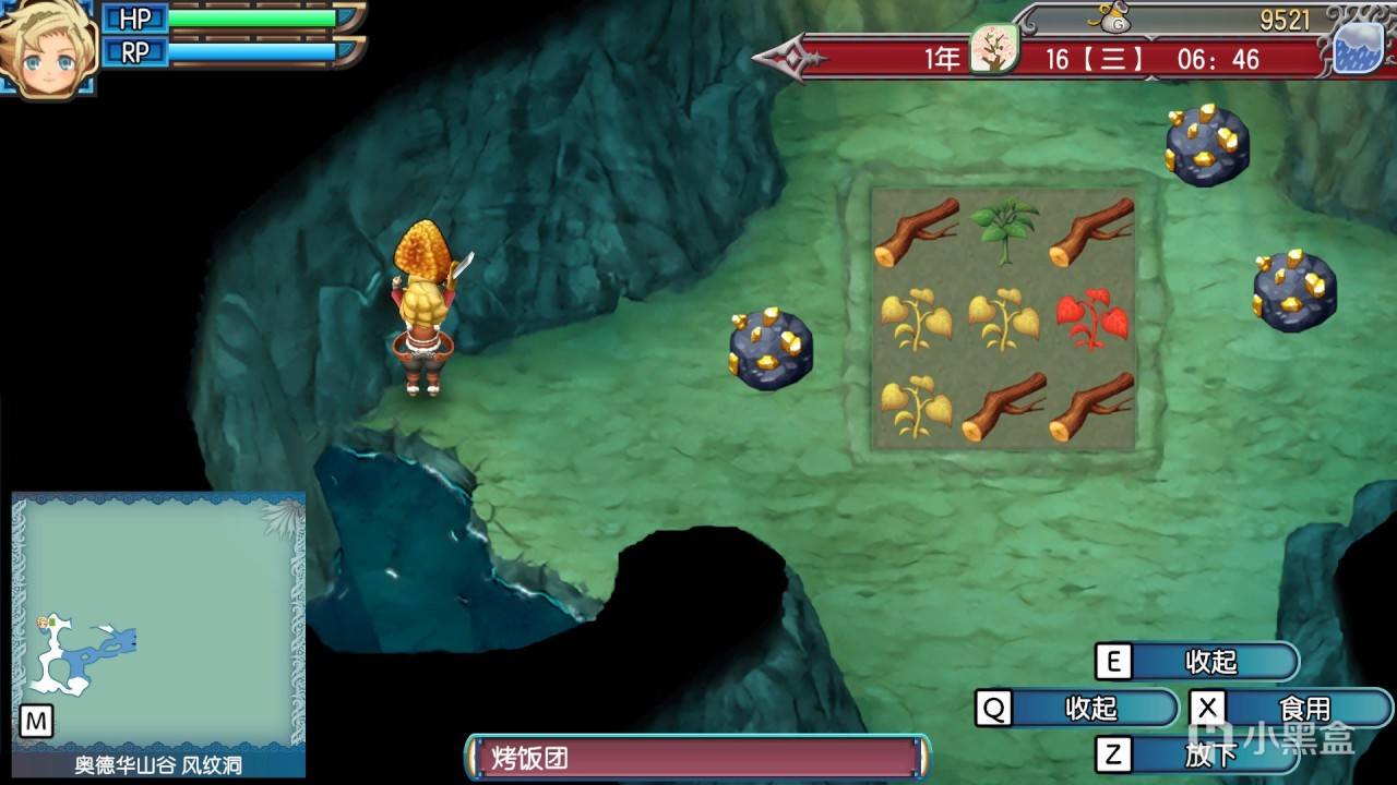 與現在普遍的經營模擬遊戲不同,本遊戲的料理製作與鍛造臺需要劇情推進到一定程度纔可以解鎖,並不是一開始就能解鎖的,所以前期在缺乏體力回覆的手段下,我們可以每天去豪宅右方的迷宮山洞裏白嫖一份食物,可以賣錢也可以自用。在普利貝拉森林的一張圖中,可以固定刷新蘑菇,也是非常有效的回覆體力手段,雖然喫完後會中毒,可以用解毒草來解毒,解毒草在地圖上也是很常見的基本草藥。