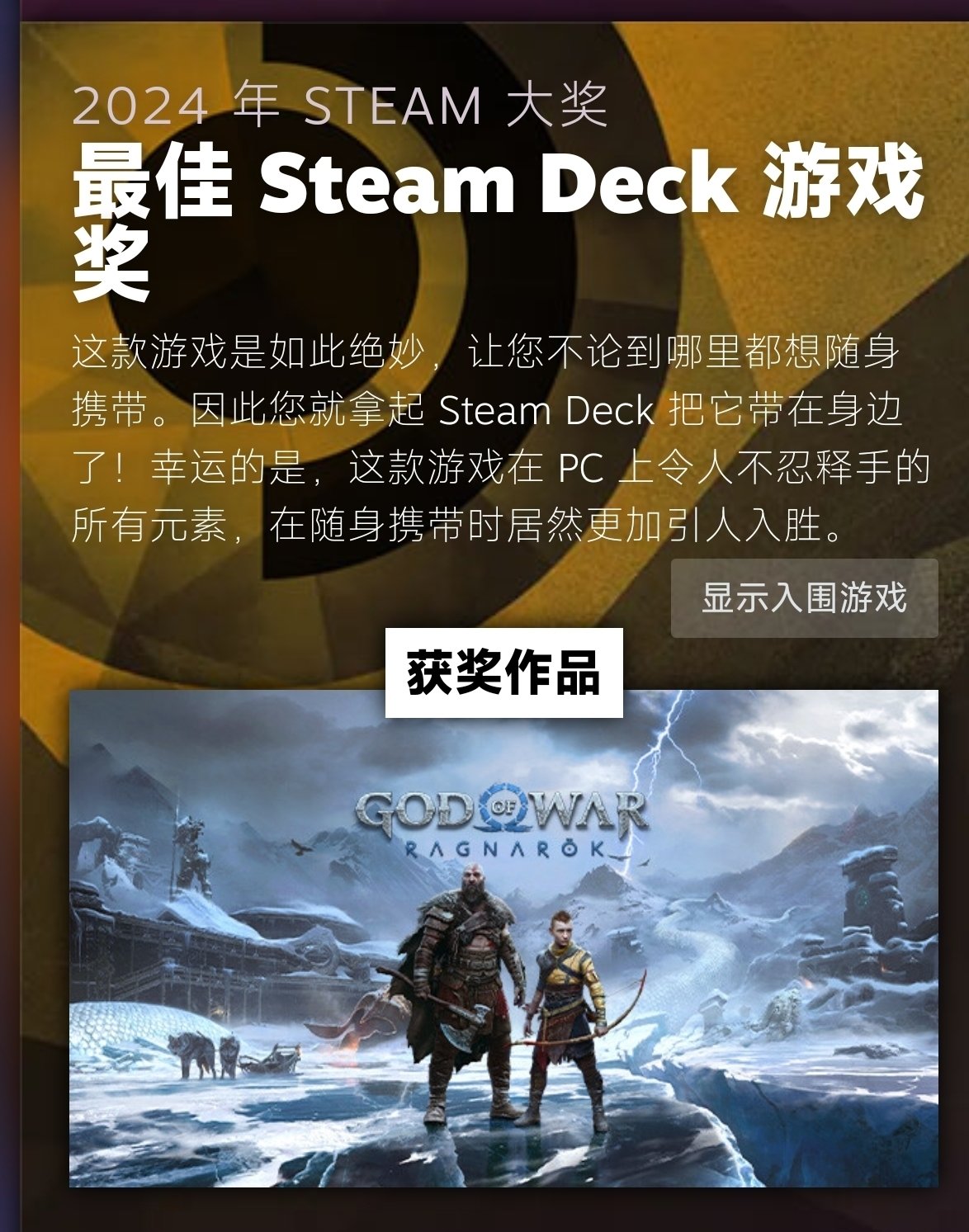 由於steam規則是最多可獲得除年度最佳遊戲以爲2款獎項,黑神話悟空可以說是拿滿了。