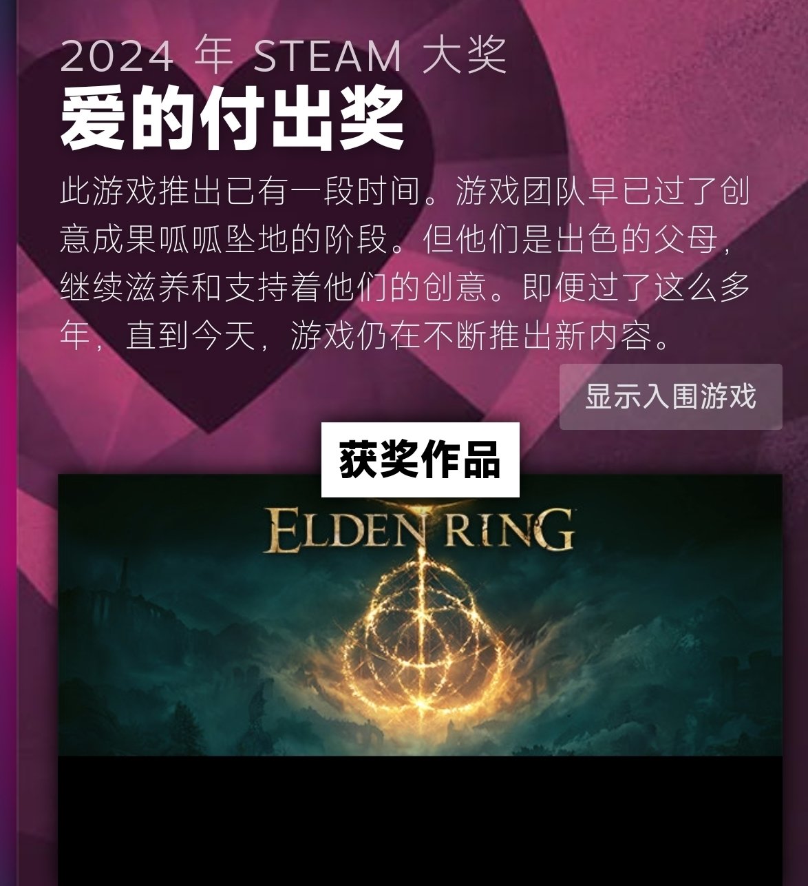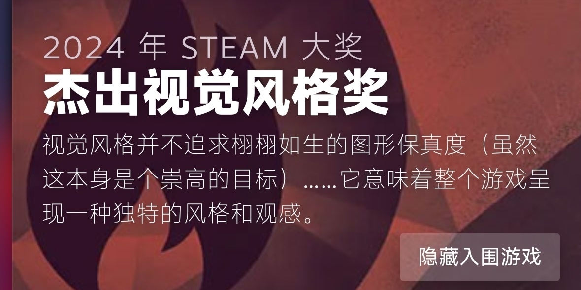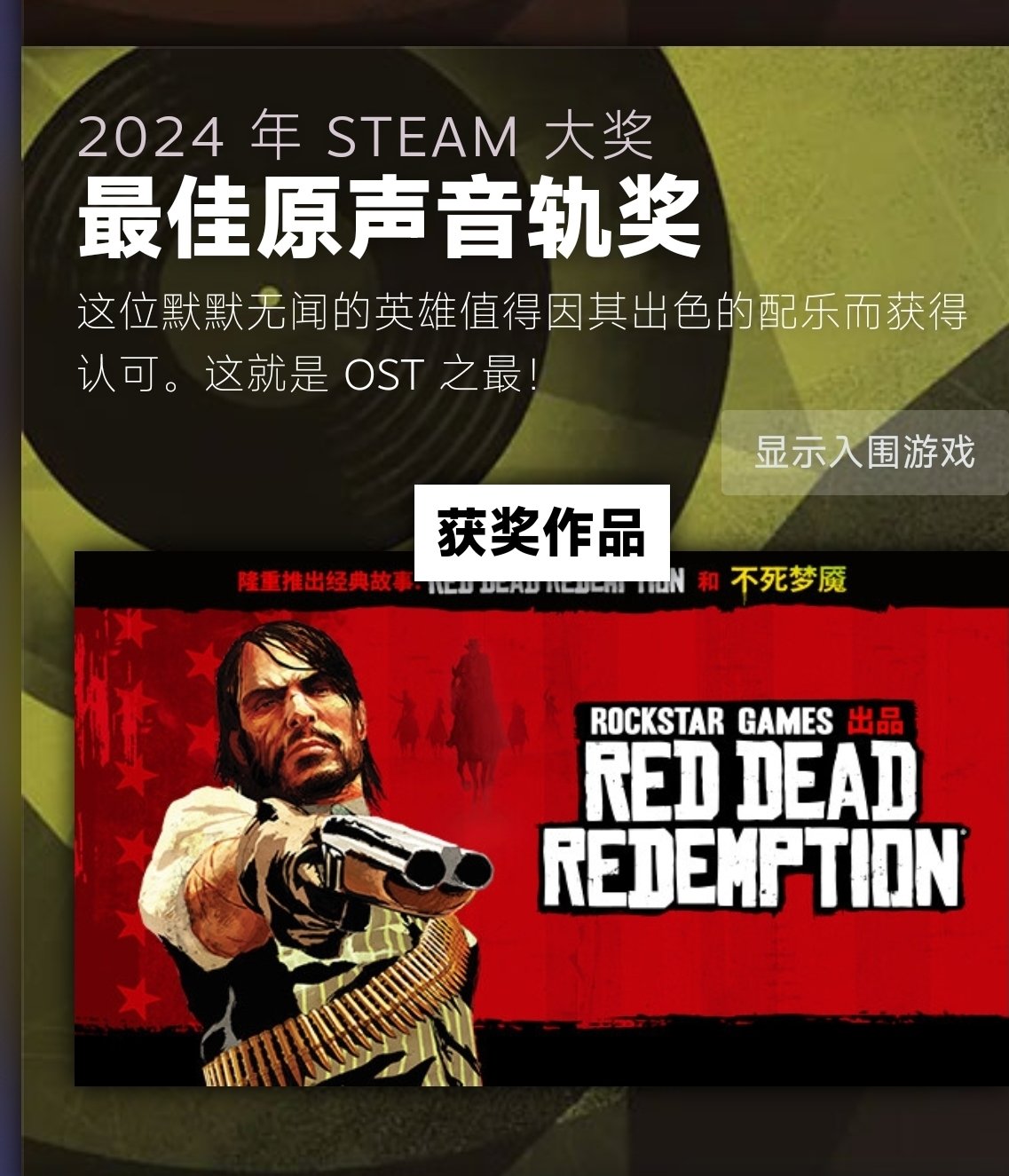 插播一條信息我看別人博主發的是《寂靜嶺2:重製版》獲得此獎,好像是寂靜嶺國區steam搜不到,可能目前鎖國區,但是黑盒又可以買,具體是什麼原因我目前也不是很清楚,有沒有哪位大佬知道。