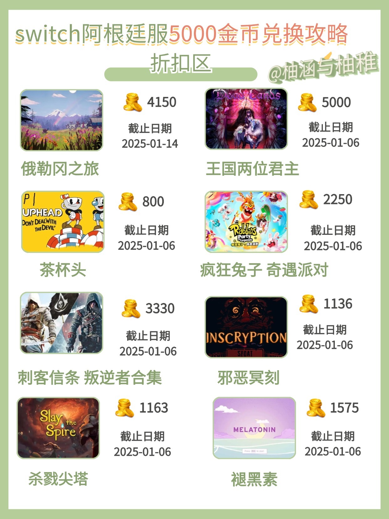 25年的第一篇阿根廷服的遊戲折扣,本週以掃尾爲主,茶杯頭。褪黑素、高腳精靈等遊戲還有4天折扣就結束了,下次可能又要等一個月了,所以這次還是把這些熱門兌換遊戲都列出來了!
