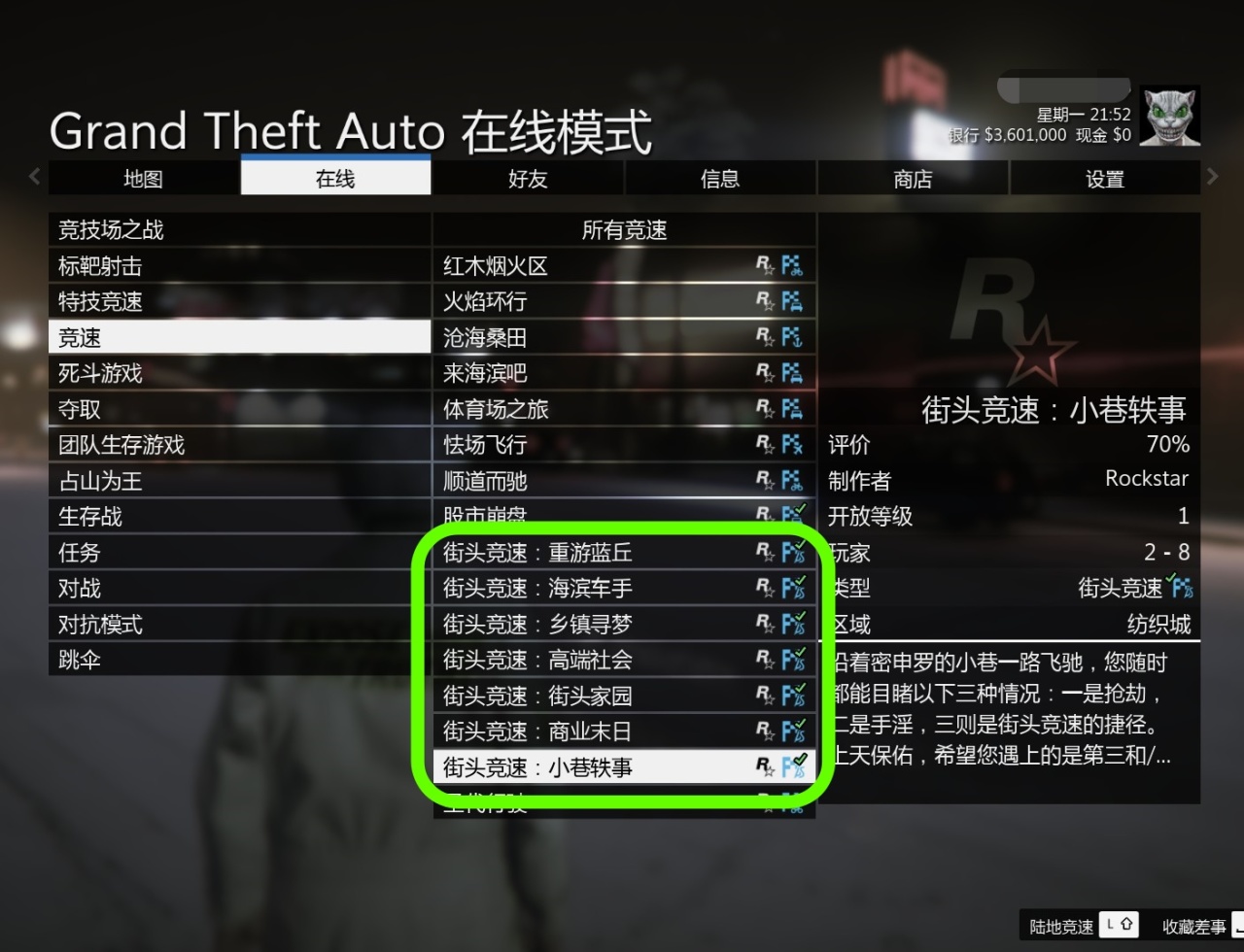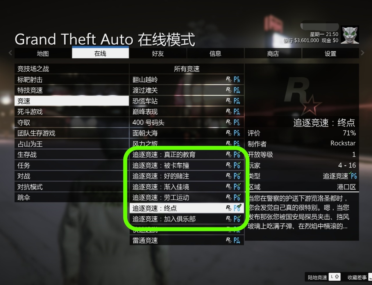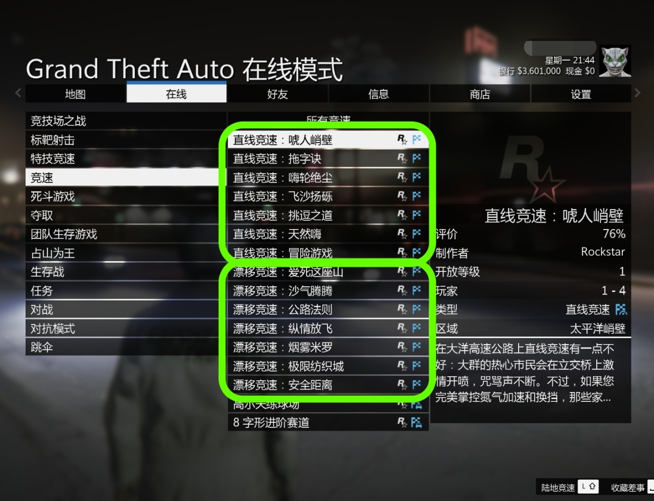 ESC-在线-差事-进行差事-R星制作-竞速-直线/漂移/追逐/街头竞速
