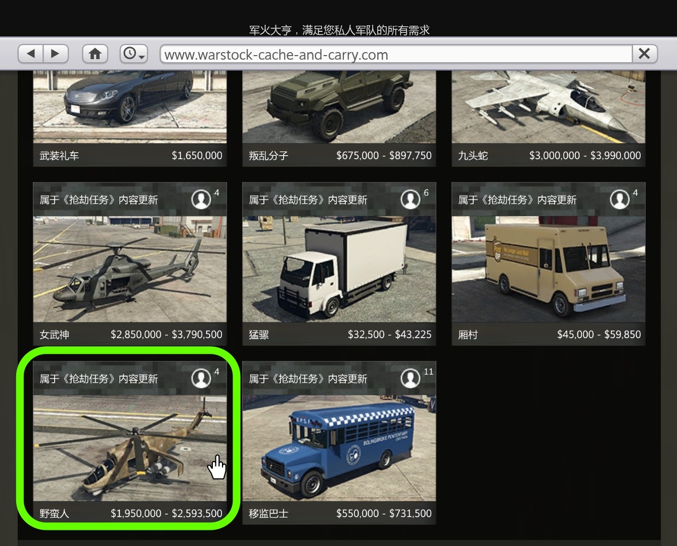 武装大亨:半履战车、野蛮人直升机7折出售!