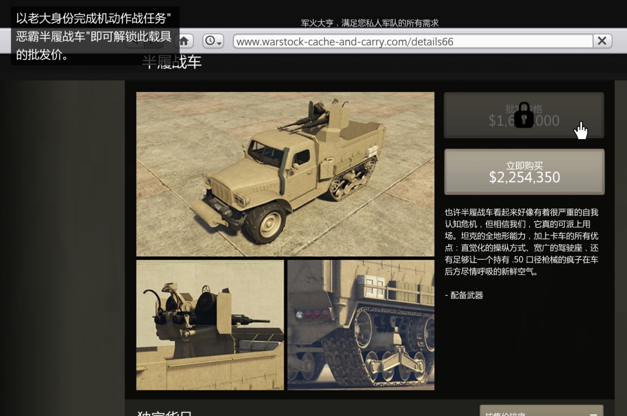(以老大身份完成机动作战中心“恶霸半履战车”任务解锁批发价)