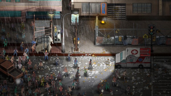 丧尸崛起,文明陷落。在这个动作策略模拟游戏中,您的一小队幸存者将不得不前往开放世界搜刮资源,并建立可以抵挡丧尸群攻击的基地。