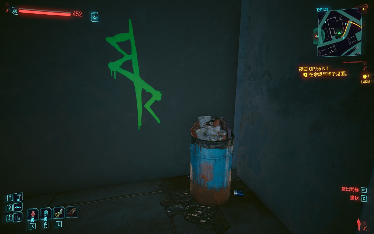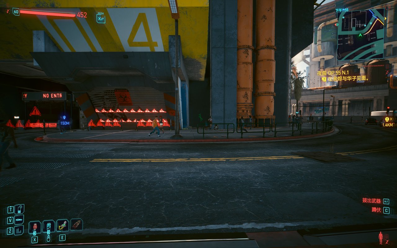 首先打開地圖直接傳送到“超級摩天樓H4”,到了之後就是圖2的視角,直接往前走,走到圖3的分岔路口以圖3視角爲準直走,或者以遊戲內地圖路線爲準右轉直走,一直走到警戒線,在警戒線和管道中間有一個小角落,牆上有綠色的邊緣行者噴漆,在噴漆下面的垃圾桶上有野生黑超夢,如圖4圖5所示,靠近互動並觀看超夢就可以觸發支線,最後可以在老船長那拿到大衛的黃色夾克。