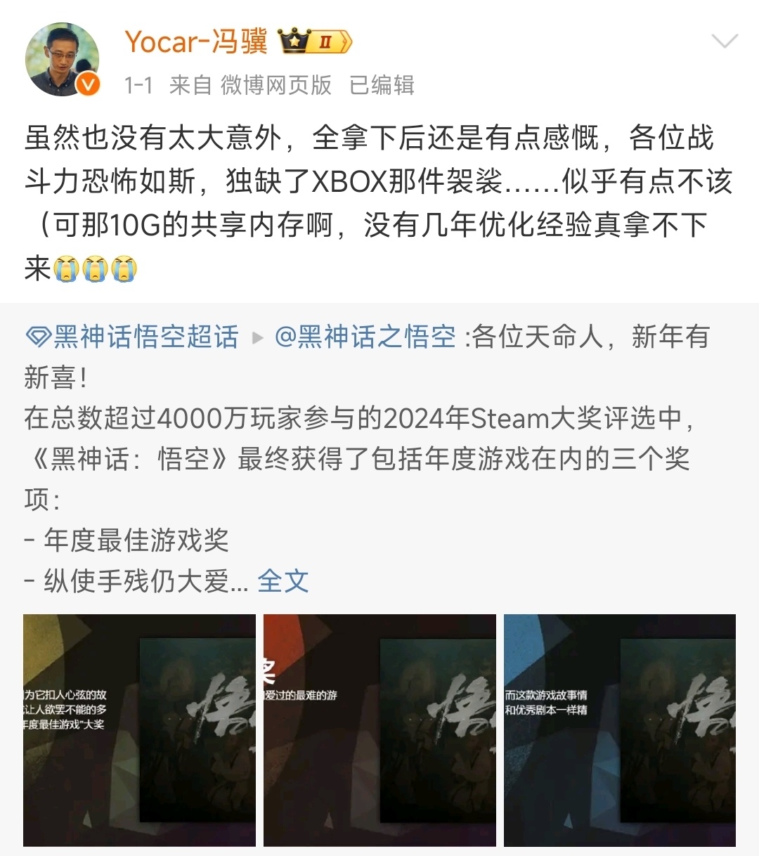 而最近恰逢黑神話悟空獲得了steam年度遊戲大獎,遊戲科學創始人、黑神話悟空製作人馮驥在微博上發表了關於黑神話上架xbox遇到的問題,而ign再次找到機會,把消息傳遞爲遊戲科學把責任歸咎於xbox s的機能,並且還大言不慚的表明黑神話沒有xbox版本