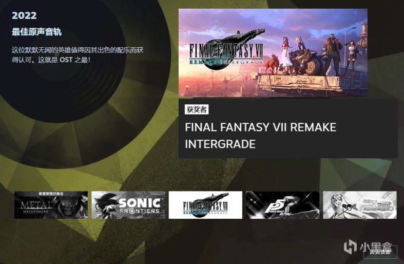 ✅最佳原聲音軌:《最終幻想7重製版INTERGRADE》