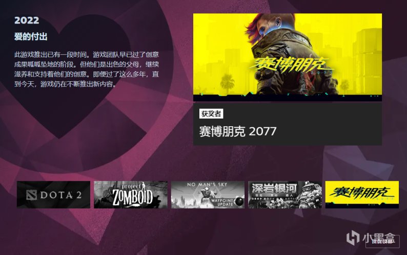 北京時間1月4號,STEAM也是公佈了2022STEAM大獎的獲獎名單。STEAM大獎是STEAM於2016年創建的一個玩家遊戲評選活動,和專業評委參與的TGA遊戲大獎相比,有着投票人員羣體的明顯區分,可以理解爲“玩家選擇獎”。STEAM大獎分爲提名和投票階段。在提名的第一階段,成功註冊了STEAM的用戶,都可以爲所有獎項選擇一款遊戲,前提是這個遊戲在STEAM上架。投票階段,每個單獨獎項都有TOP5入圍,STEAM玩家投票角逐出這個獎項的第一。