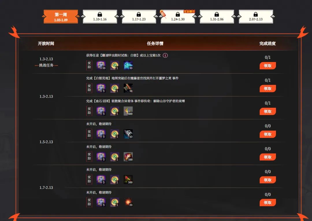 你将面对在活动期间,你只要完成每周7个简单挑战目标任务,轻松即可拿捏本次活动!值得一提的是,在任务开启后,整个活动周期内你都可任选时间段完成活动挑战。