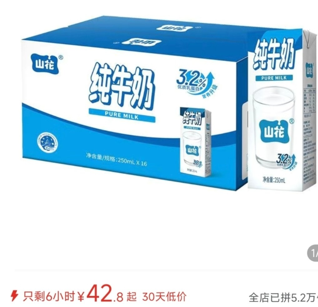 四、山花牛奶(推荐:80分,口感:7.5分)