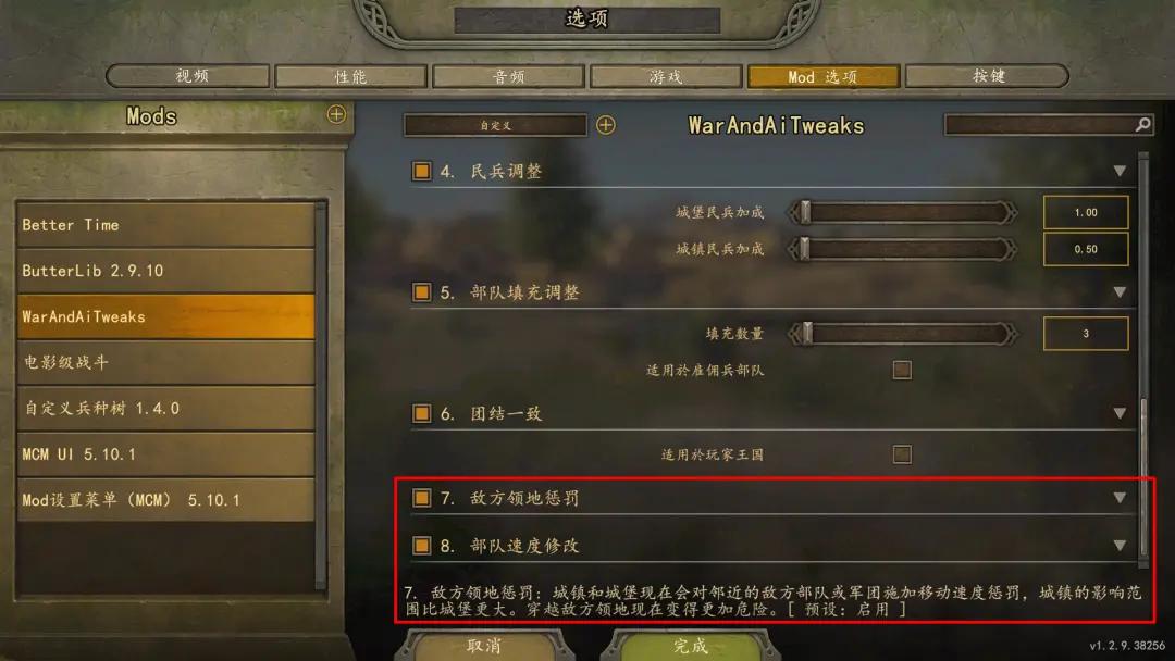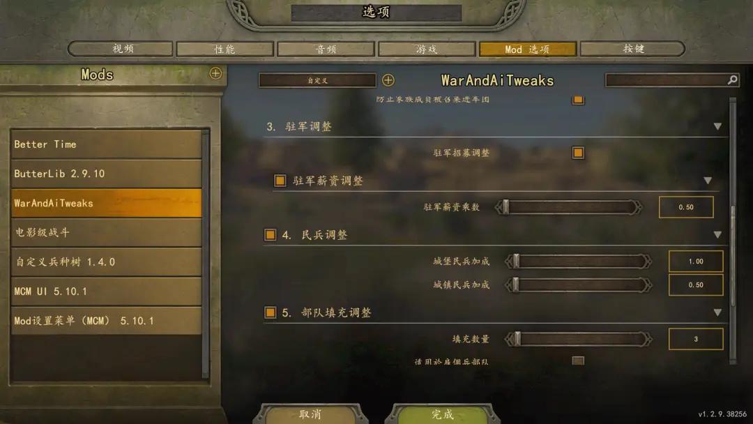 《戰爭與AI調整》是由國外大神jtlane16、Windwhistle、Shadow32055製作,騎砍中文站Cartoonist57漢化的功能性拓展MOD,這款MOD旨在讓玩家體驗到更真實的大地圖戰場,各國領主的AI邏輯得到了全新升級,徵兵、軍團機制得到了全面優化。還有關隘系統的下位替代功能,只爲讓玩家參與戰鬥決策時多動腦思考。