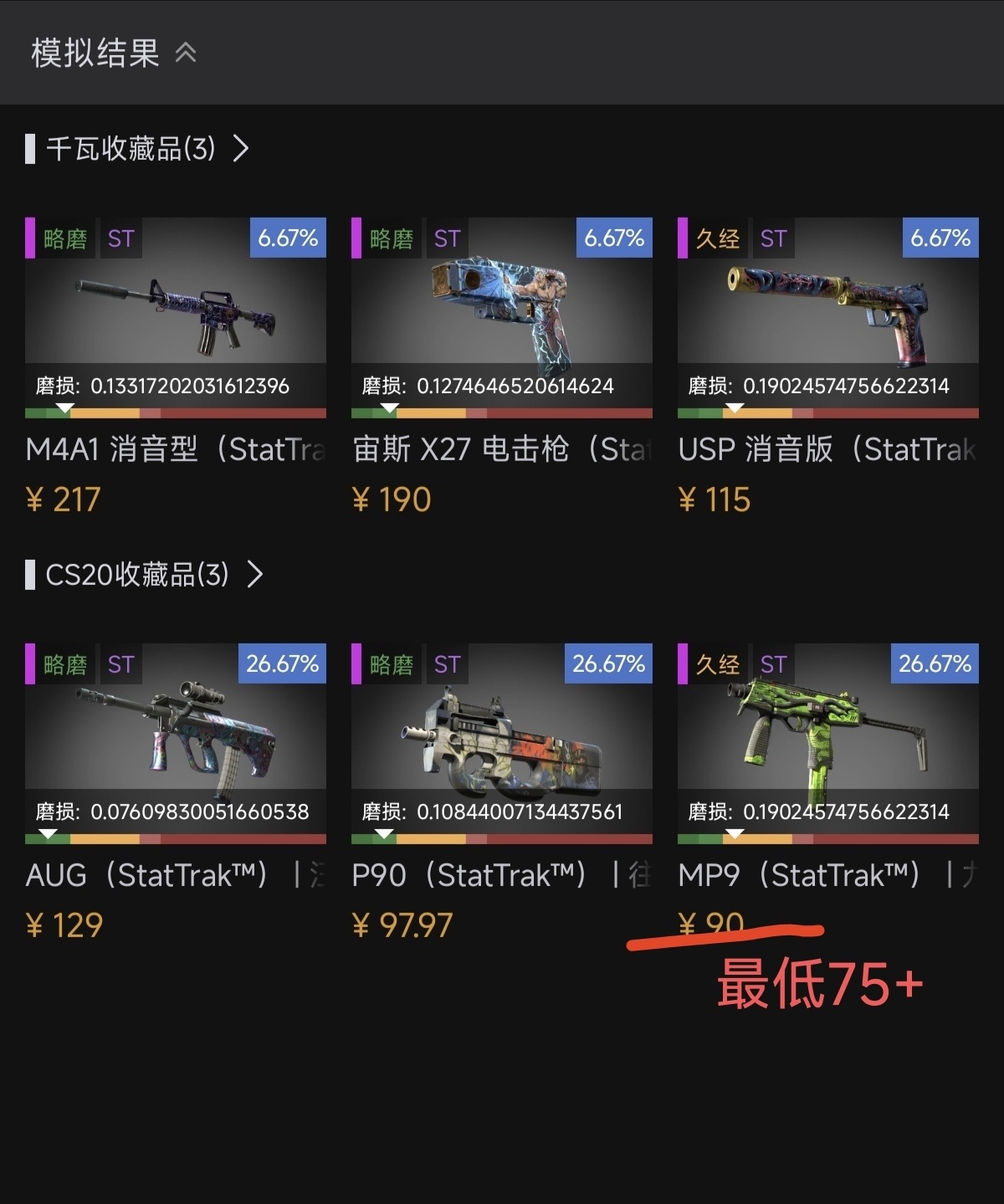 出Cs20aug目前来看还能小赚(因为磨损区间最低标价是赚的)其余两个则是小亏