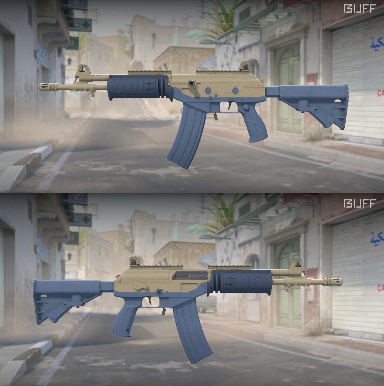 推荐这款枪皮的主要原因还是他的那种纯粹的配色,和燕尾很像的天蓝搭配上米色,搭配上一些印花效果应该会很好,不是太怎么吃磨损,局内效果很不错,推荐略磨入手