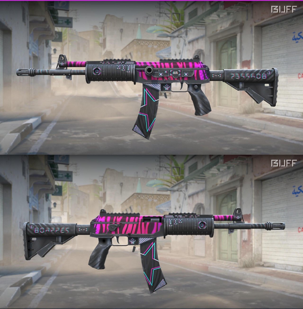 黑白搭配的一款枪皮,枪身上有很多字符的设计,非常耐看,局内效果也很好,只是比较吃磨损,会有一些刮花和小瑕疵,推荐略磨入手,可考虑暗金(23.5)