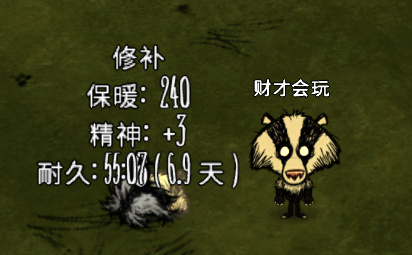 第三個技能冬日暖陽,學會之後可以製作冬眠帽。冬眠帽有240保暖,3點理智值恢復效果,同時減少25%的飢餓消耗。