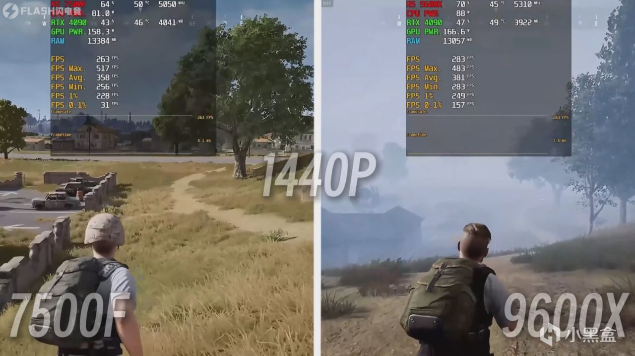 在網遊《PUBG》中,1080P分辨率下最高畫質,9600X對比7500F,是拉開了百幀的差距,平均幀數上9600X領先7500F約有40%。