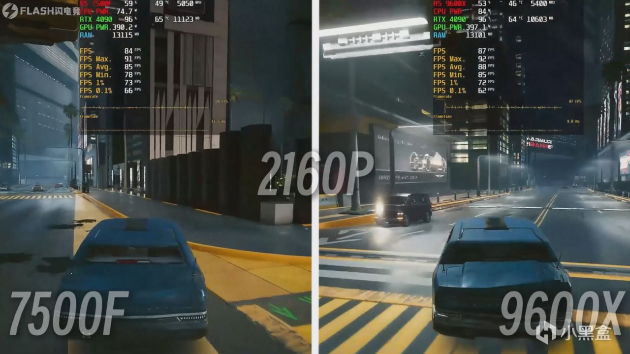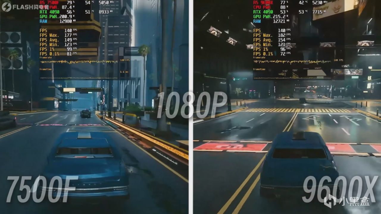 在《賽博朋克2077》中,1080P分辨率下2顆CPU的差距依舊不大,僅相差5幀,