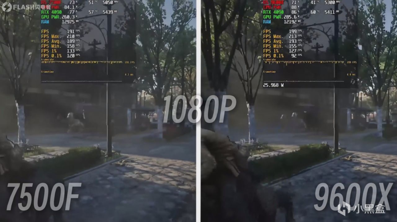 測試環節到這裏就結束了,其實不難看出,在1080P分辨率下,9600X對比7500F的提升還是立竿見影的。平均下來9600X在幀數上領先約有30%。如果你目前正在使用1080P分辨率的顯示器,並且後續不打算升級CPU,那麼多花300塊選擇9600X遊戲體驗的確是會更棒一些。