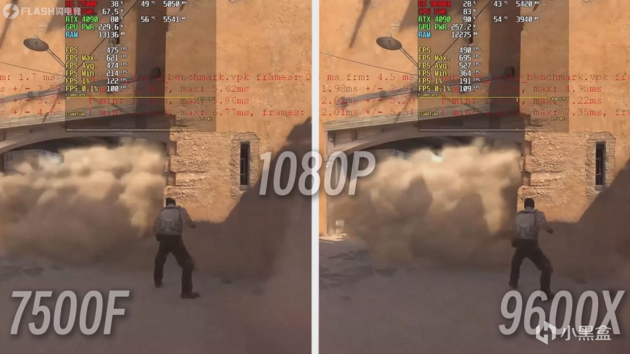 在《CS2》這裏,1080P分辨率下最高畫質中,9600X對比7500F還是有約11.18%的提升,