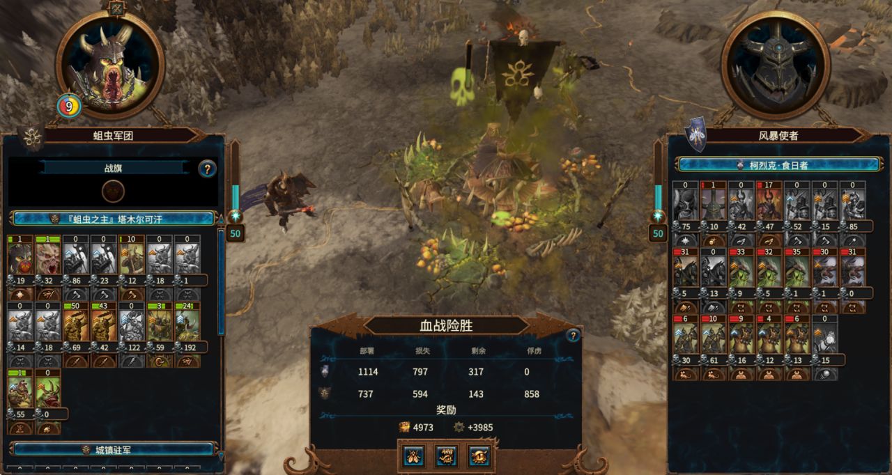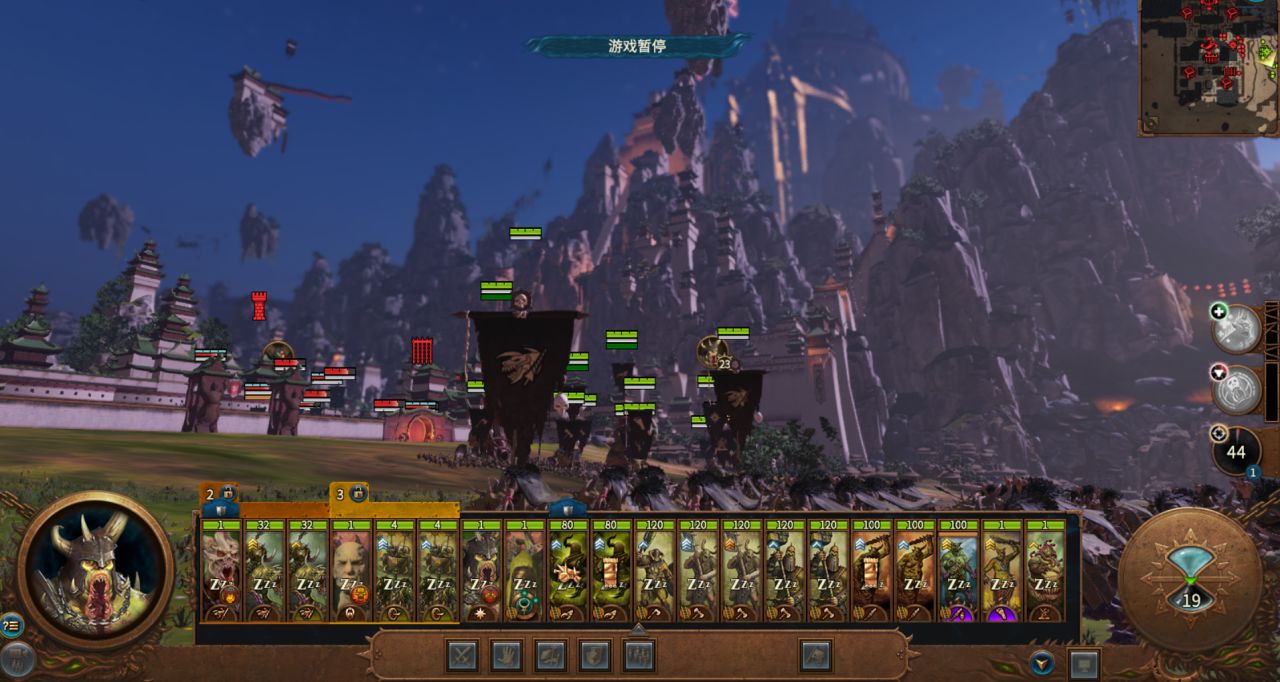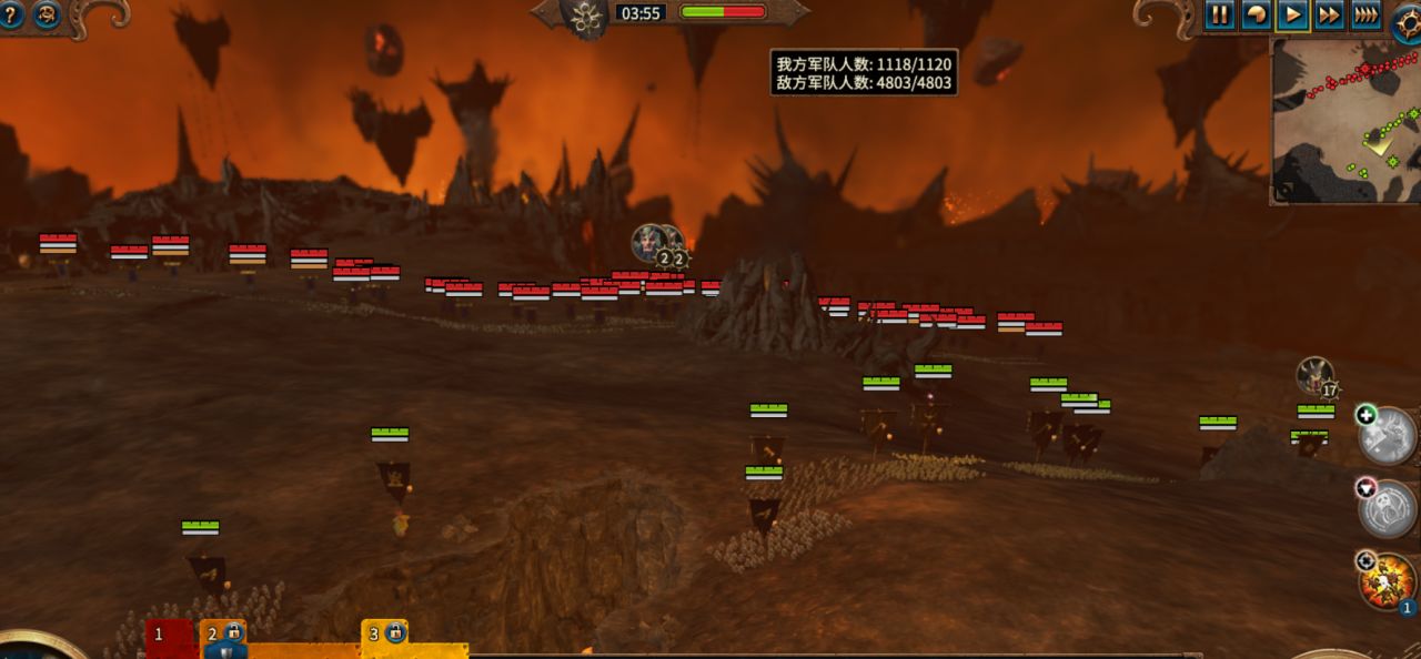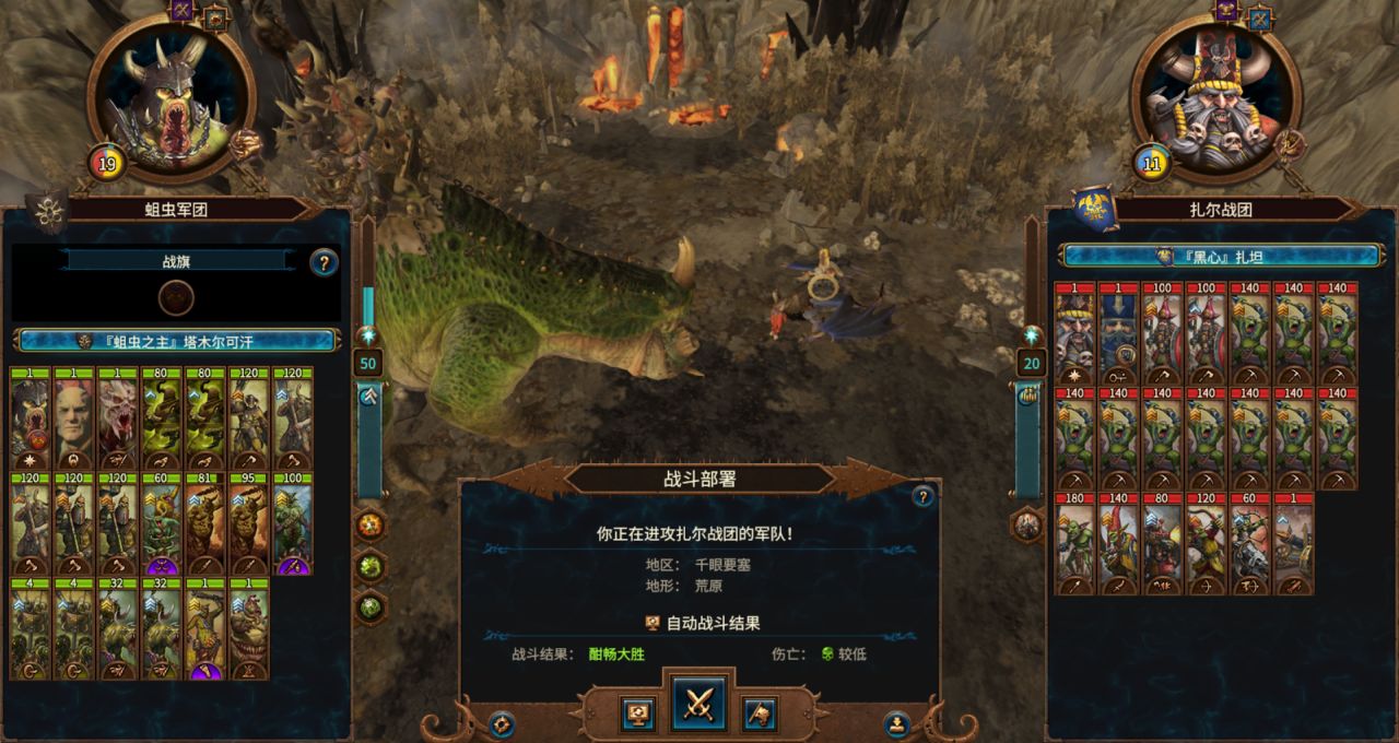 依然是腐烂骑+战车对准敌军侧翼冲锋,再让可汗率领本队步兵+怪兽莽上去。