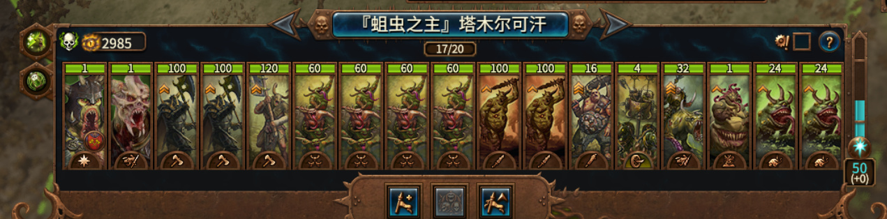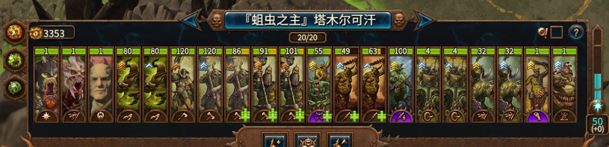 纳垢我就不用前中后来分了,直接上自己玩时的配兵,有啥招募啥,但最后会留下一些好用的强大的精英部队。