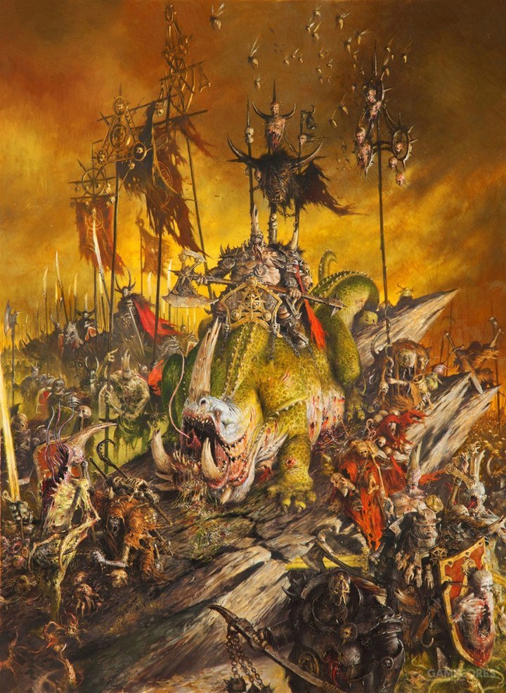 可汗从哪里来,谁都不知道。有人说成为纳垢神选之前是北佬勇士,也有人说他是某个战场疫病与仇恨的集合体,化作蛆虫被纳垢赐福,后来打败某个食人魔领主夺取了其身体,才成为现在我们见到的样子。