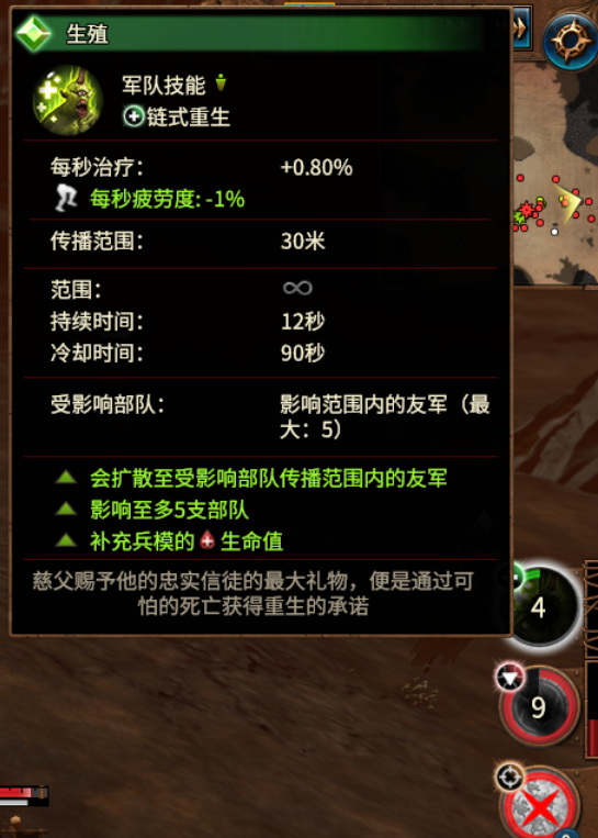 增加大地图移动距离;非恶魔部队增益;失败后复原时间2回合,一般复活我记得是五回合。