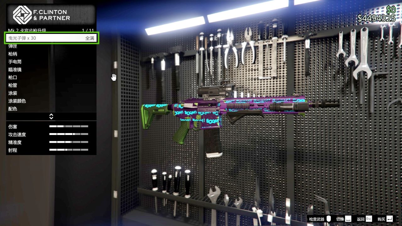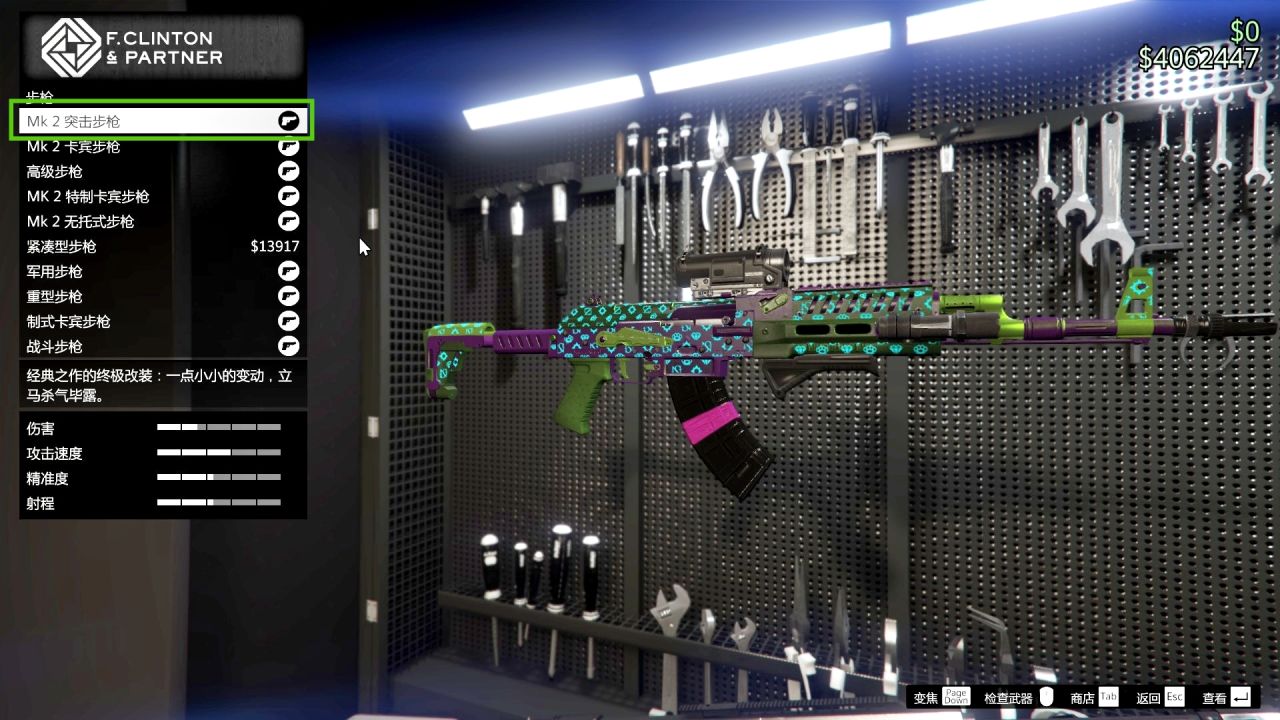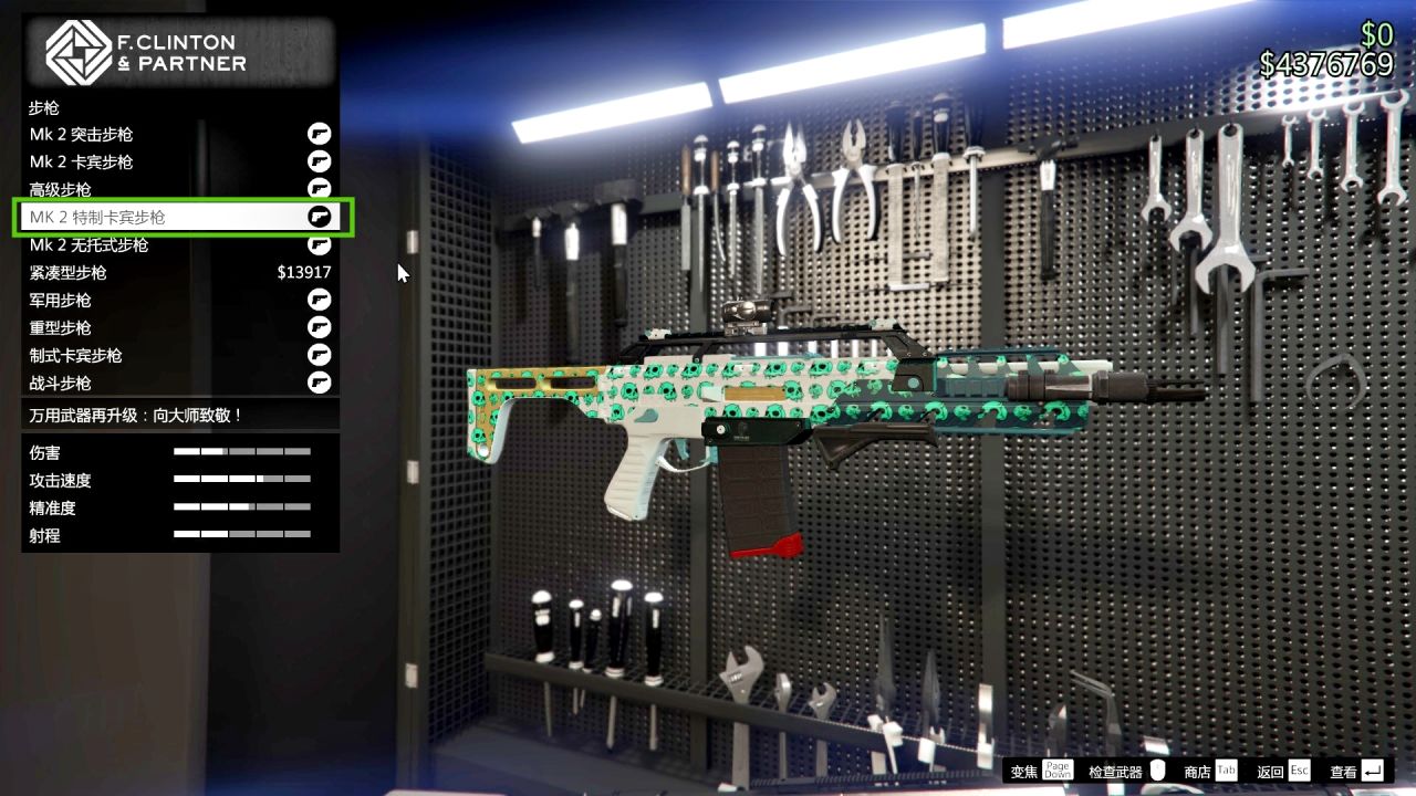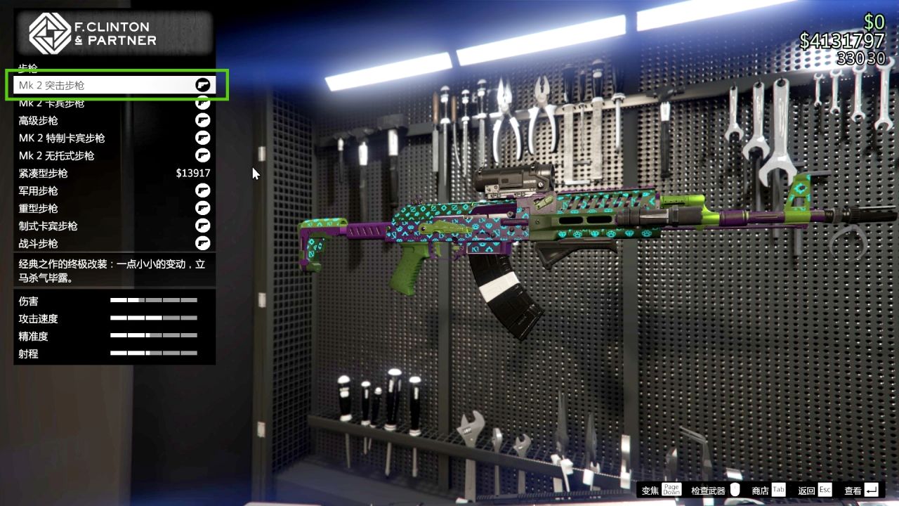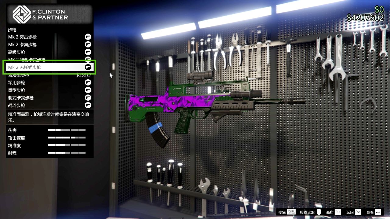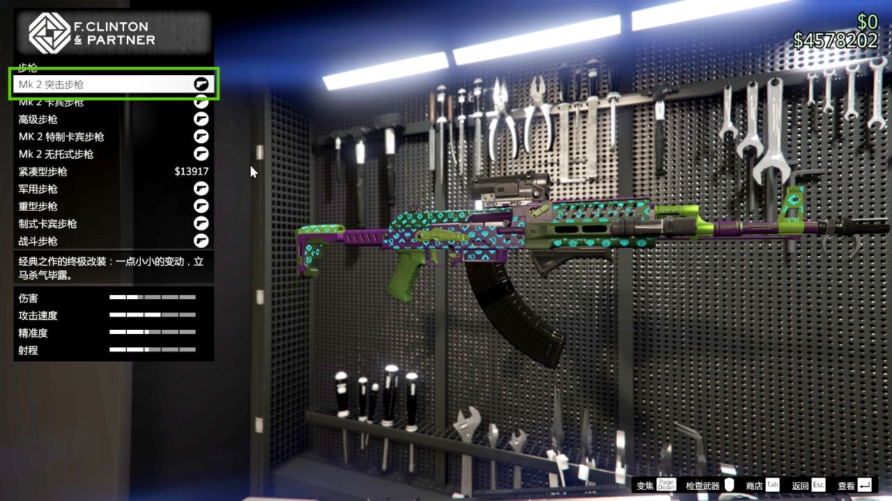 3.在任何一個資產中的MK2武器工坊處,將上述4把步槍全部升級到MK2版本