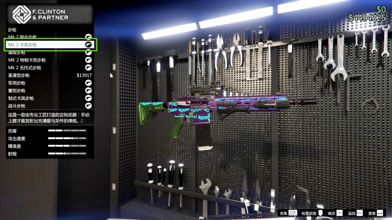 13.回到步槍菜單,重新選擇MK2特製卡賓步槍,點進去