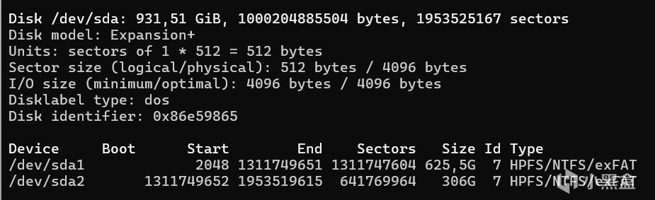 插入外置硬盘并查找硬盘设备sudo fdisk -l