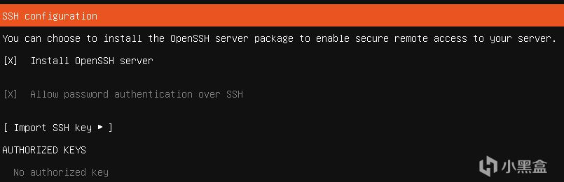 空格到install openssh server 然后done
