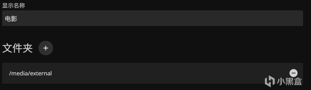 媒体库名字选择电影,然后文件夹选择/media/external点击确定
