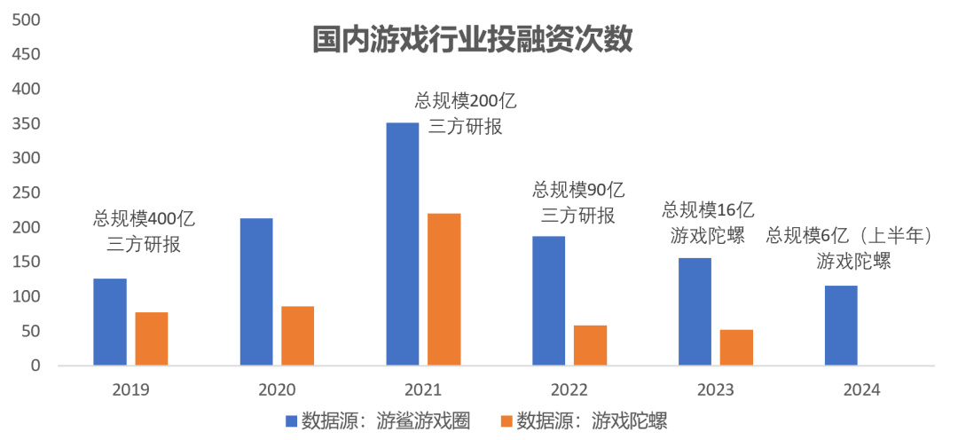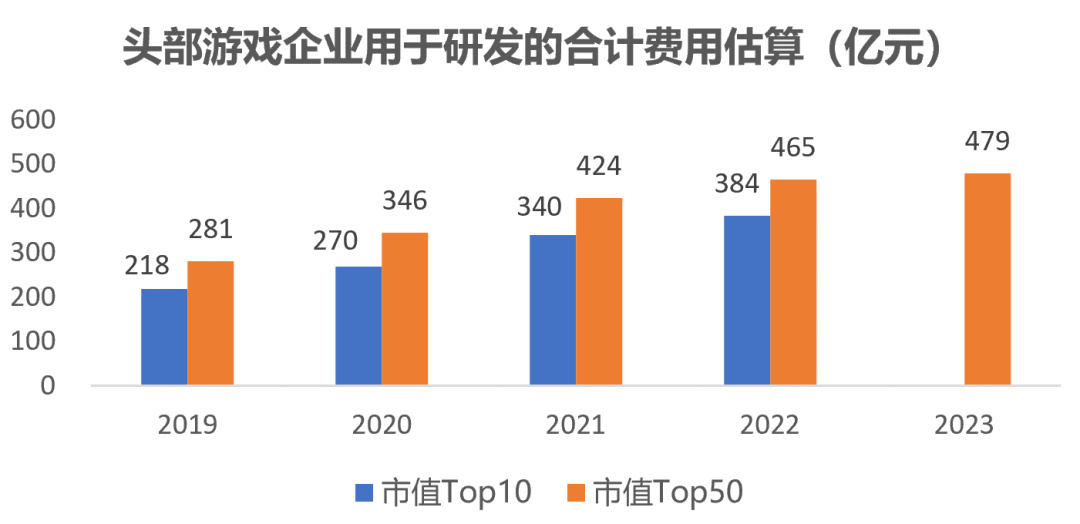 從公開數據看,國內行業的投融資次數和規模依舊處於下降態勢。而根據《中國遊戲企業研發競爭力報告》的數據,頭部企業用於研發的的投入增速整體在放緩(數據的絕對值有點問題,僅供參考)。
