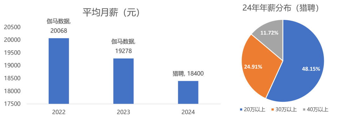 儘管24年是一個增長的年份,但具體到每個打工人,恐怕是冷暖自知。結合伽馬數據和獵聘大數據兩家的報告,行業的平均月薪較24年是有所降低的。