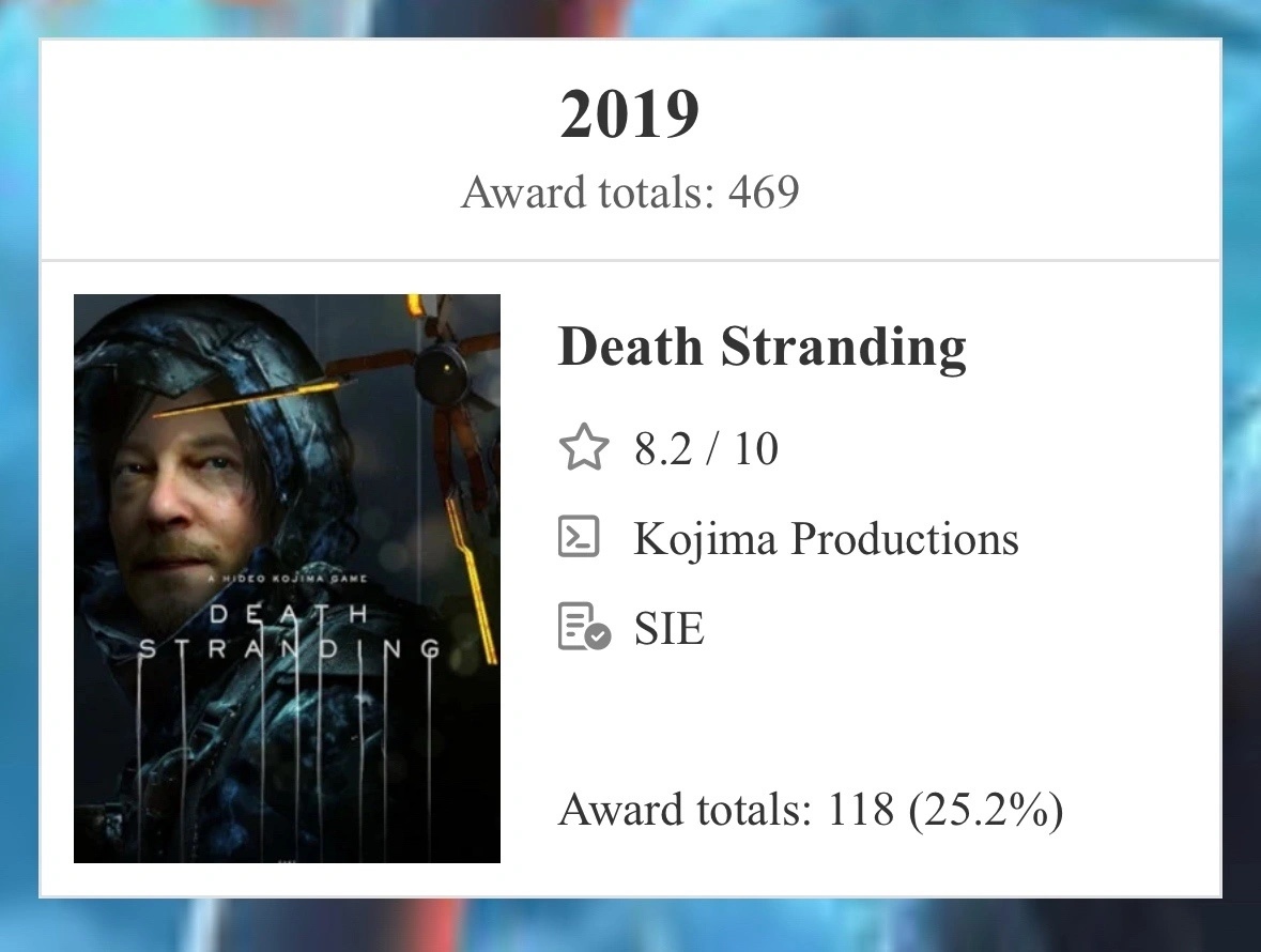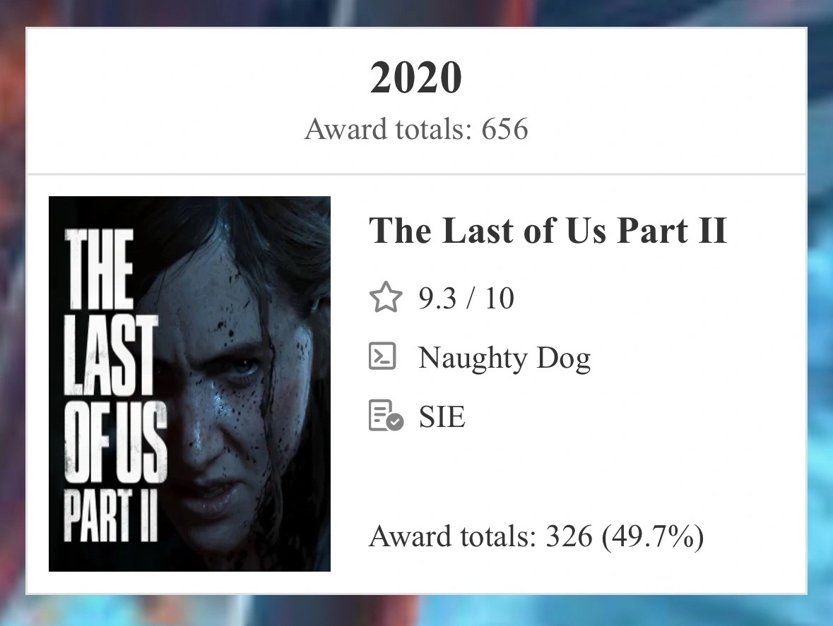 根據年度最佳統計網站的數據,索尼共有6款遊戲在當年獲得了最多的goty大獎數量,六款遊戲分別是: