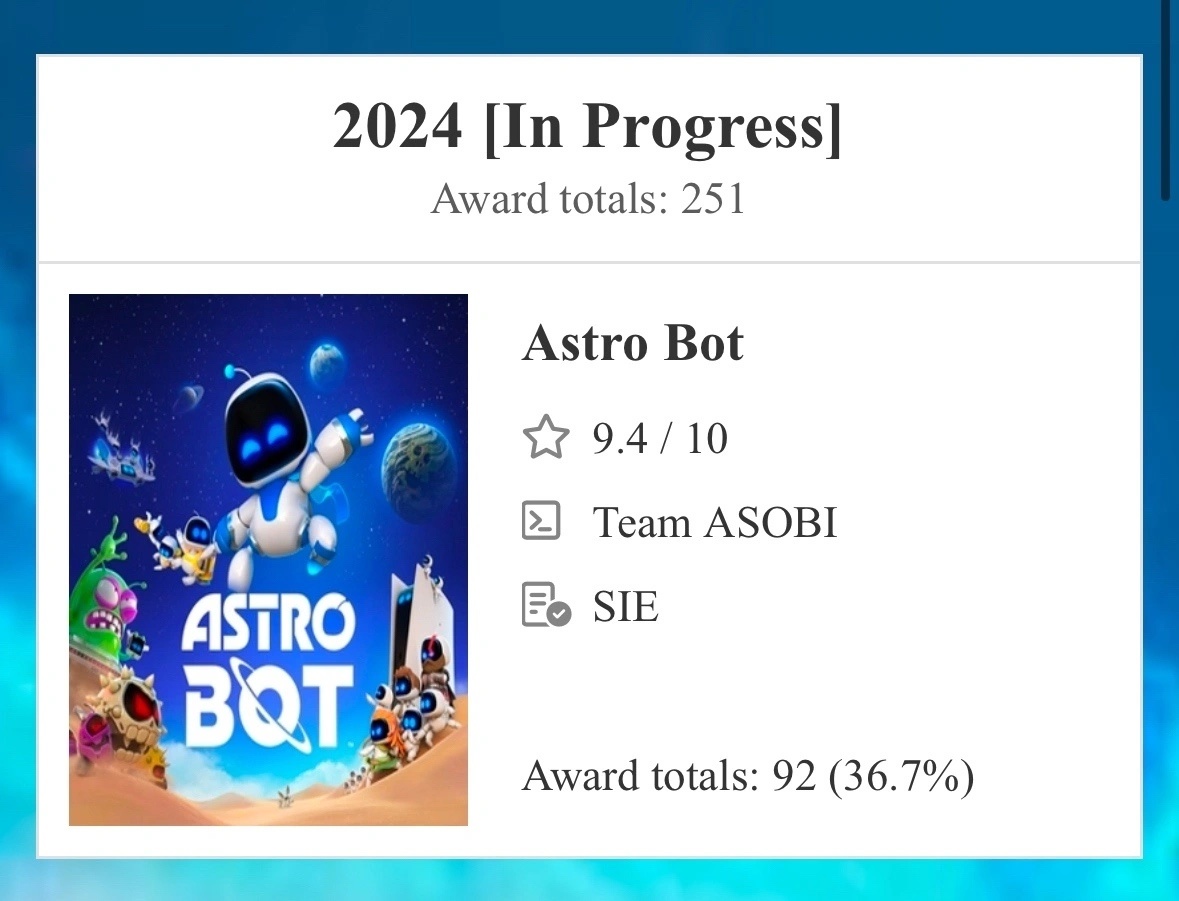 2024 《宇宙機器人》 獲大獎數:92(進行中)