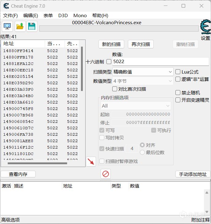 第三步:定位你需要修改的數值的地址。
