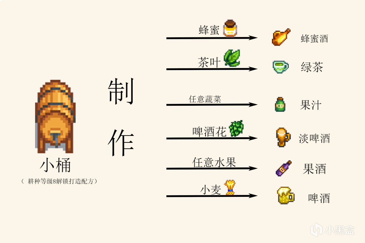 ③將房屋升級三次擁有地下室後可以解鎖木桶,木桶可以陳釀小桶釀造的物品,提升品質。